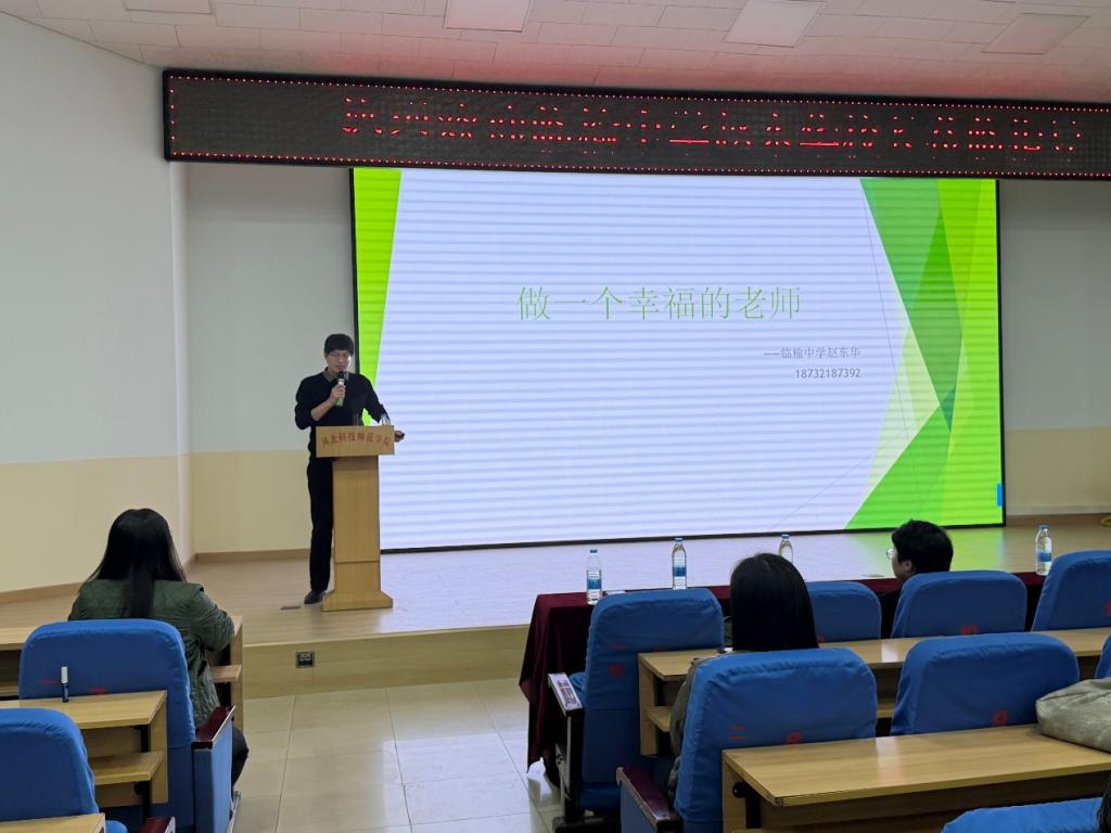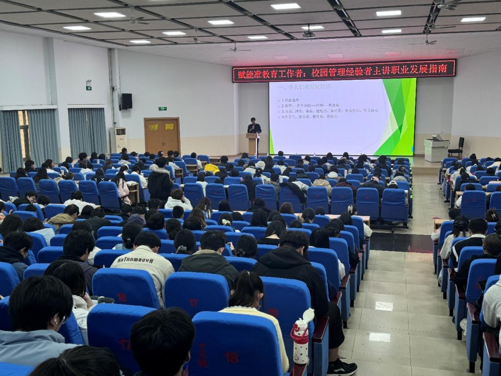 2025年11月5日,化工学院“企业专家进校园”系列主题就业讲座在学校报告厅成功举办。本次讲座特邀临榆中学校长赵东华担任主讲嘉宾,以“赋能准教育工作者:校园管理经验者主讲职业发展指南”为主题,面向学院大二、大三师范生开展就业指导,300余名学生到场聆听。