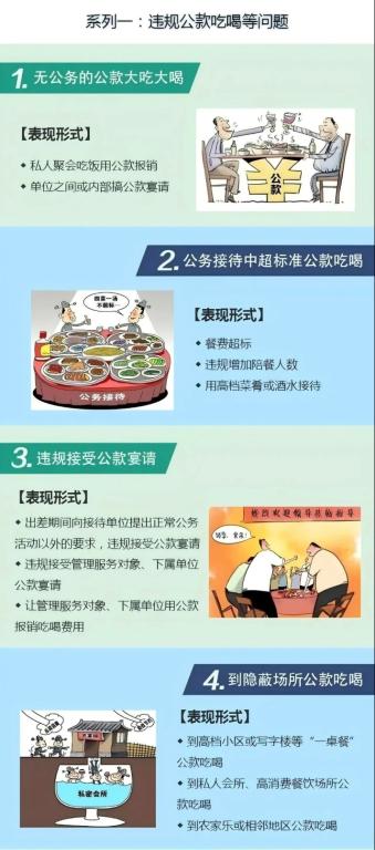 2.违规吃喝(包括2种表现:违规公款吃喝、违规接受管理和服务对象等宴请);