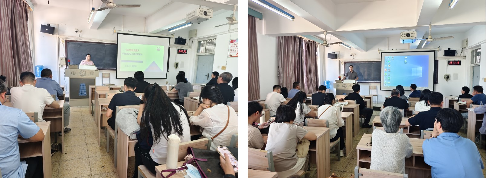 图1:化学(左)、化学工程与工艺(右)专业负责人正在进行工作汇报。
